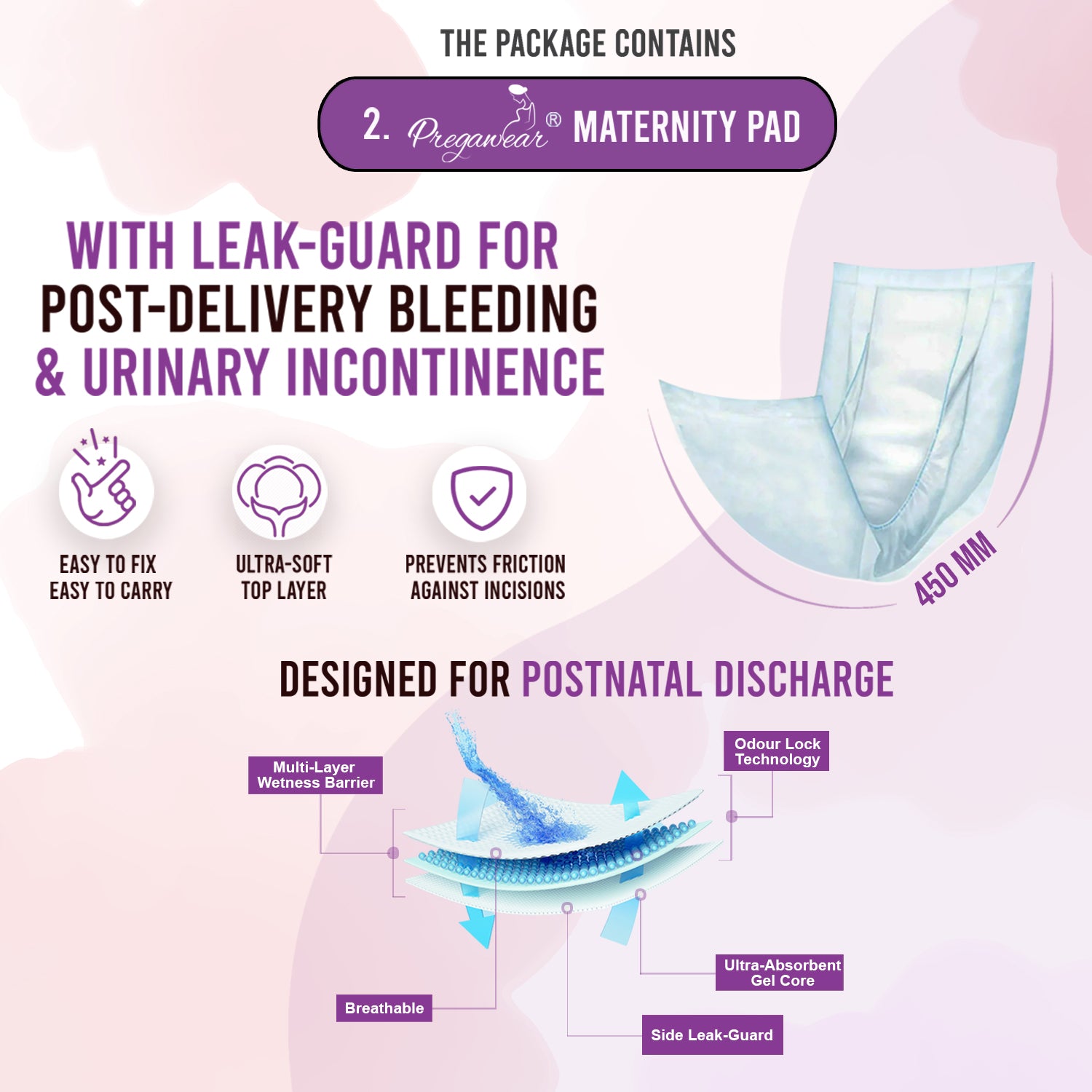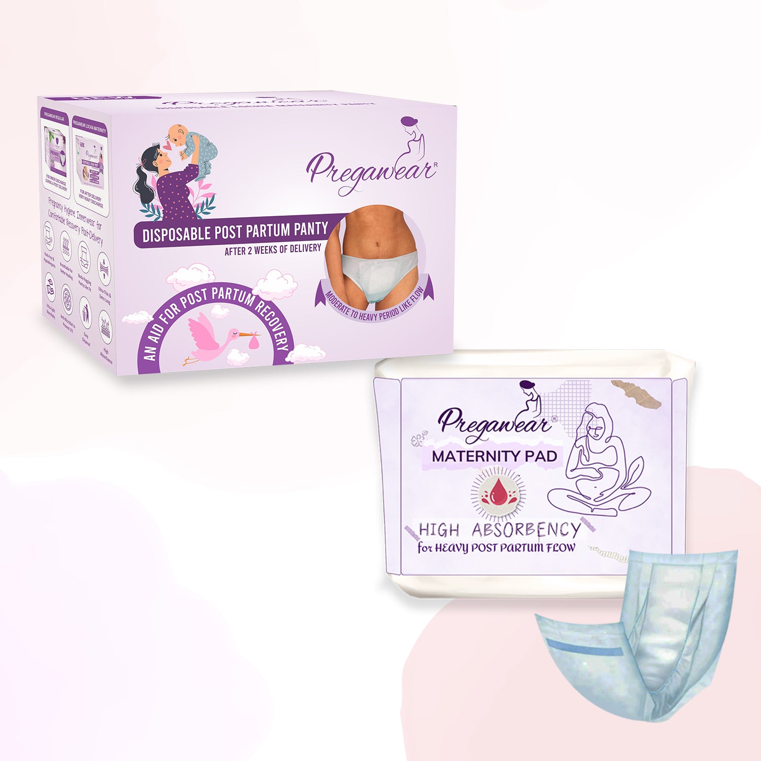 Pregawear Post Partum Panty & Maternity Pad Combo for Women|Heavy Flow|After Delivery