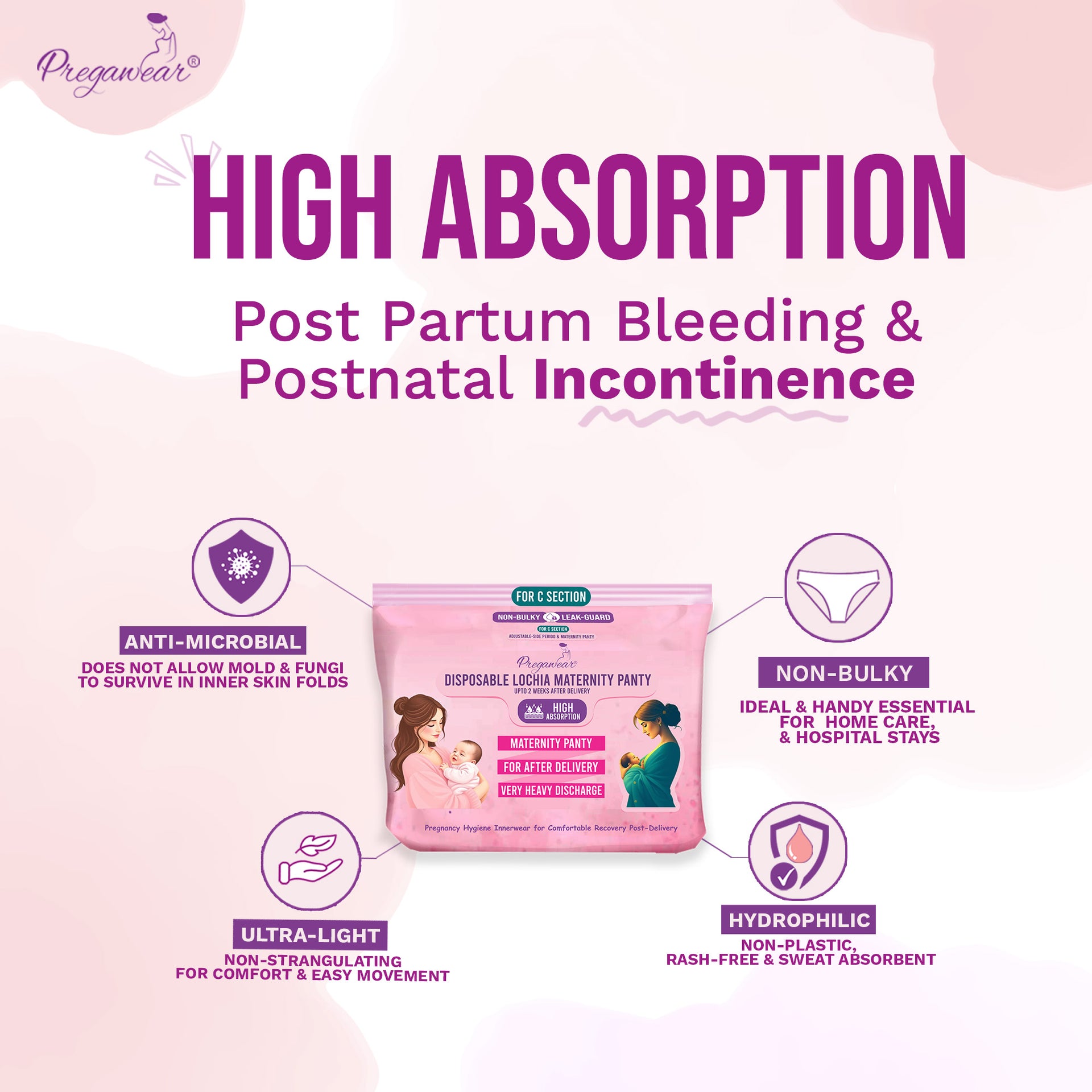 Pregawear Lochia Maternity Panty C Section & Regular Panties Combo| Antifungal, Antibacterial, Soft, Breathable, Leak-Proof Underwear for New Mothers| Heavy & Light Daily Discharge Pregnancy