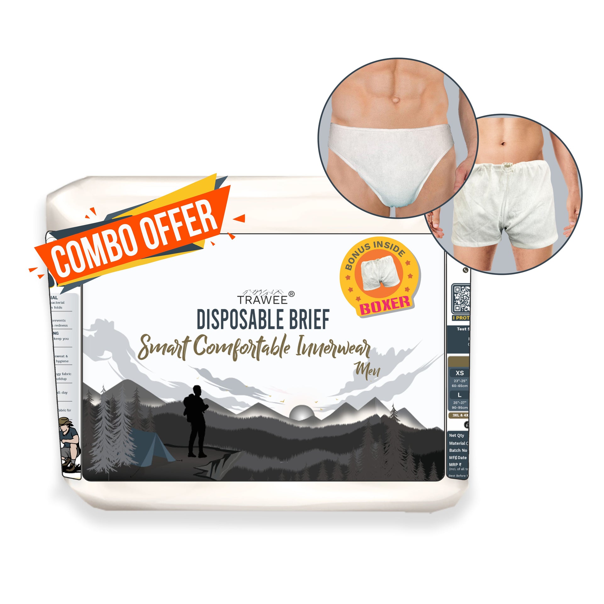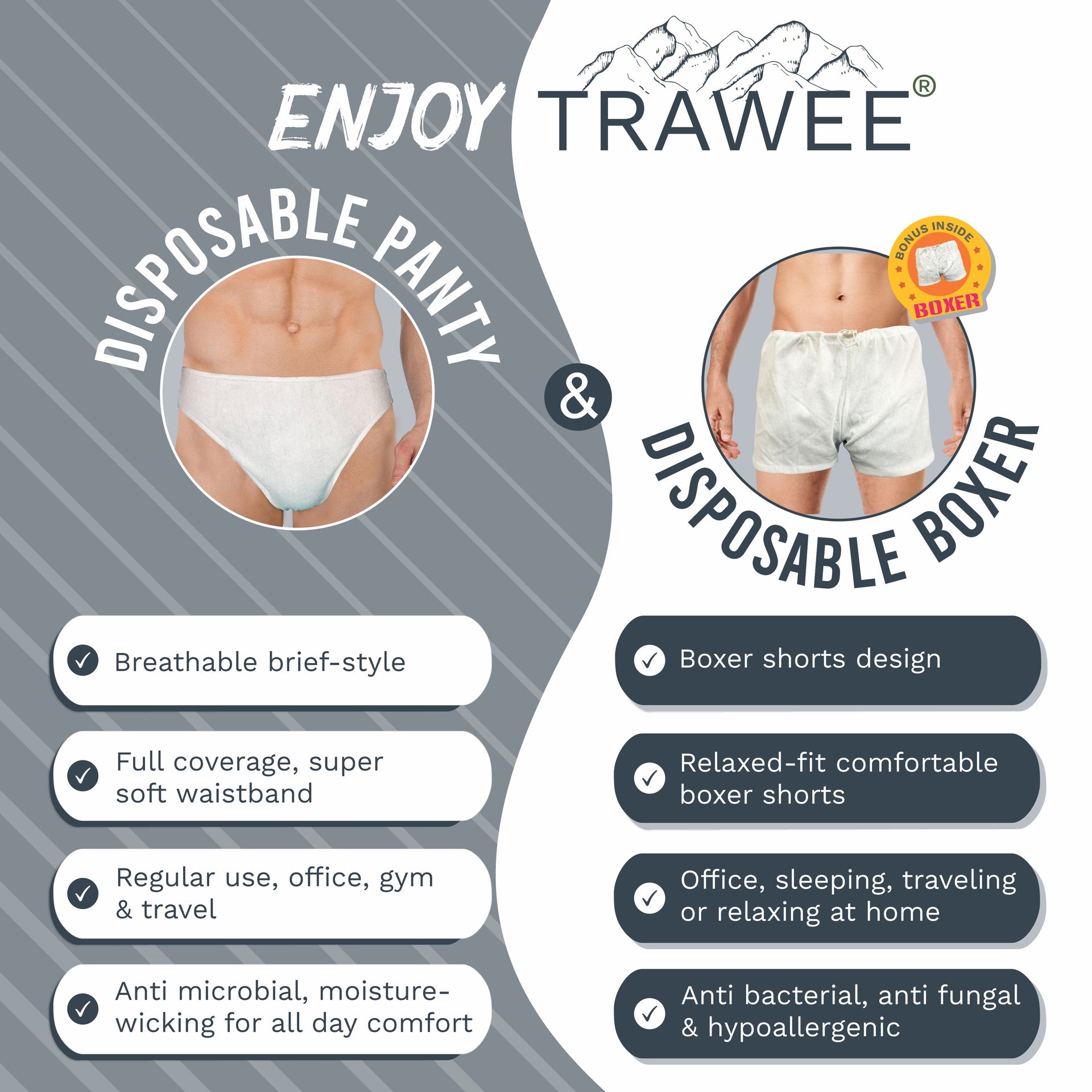 Trawee Disposable Men Brief with Free Boxer | Office, Daily Use, Travel, Spa,Night Wear| Prevents Infection| Anti Fungal & Anti Bacterial Underwear| Absorbs Sweat| Rash Free