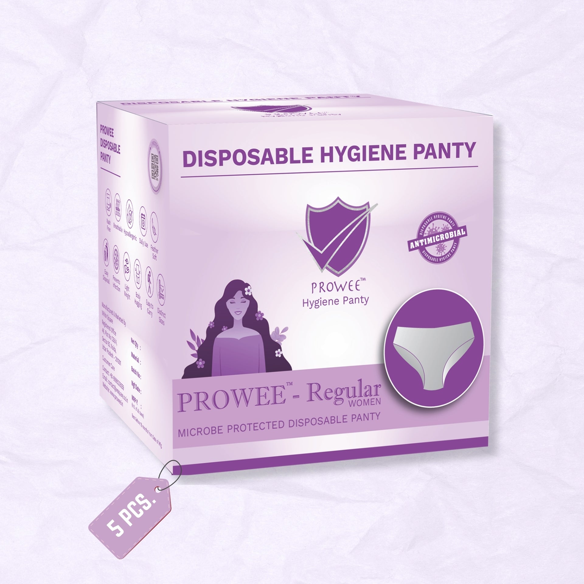 - PATENTED PRODUCT: The Design of the Prowee Disposable Panty is Patented ( Design no. 336966-001) and created to suit and fit female body type. First Ever Disposable Panty that comes in more than 6 Sizes to provide the comfort of a conventional underwear