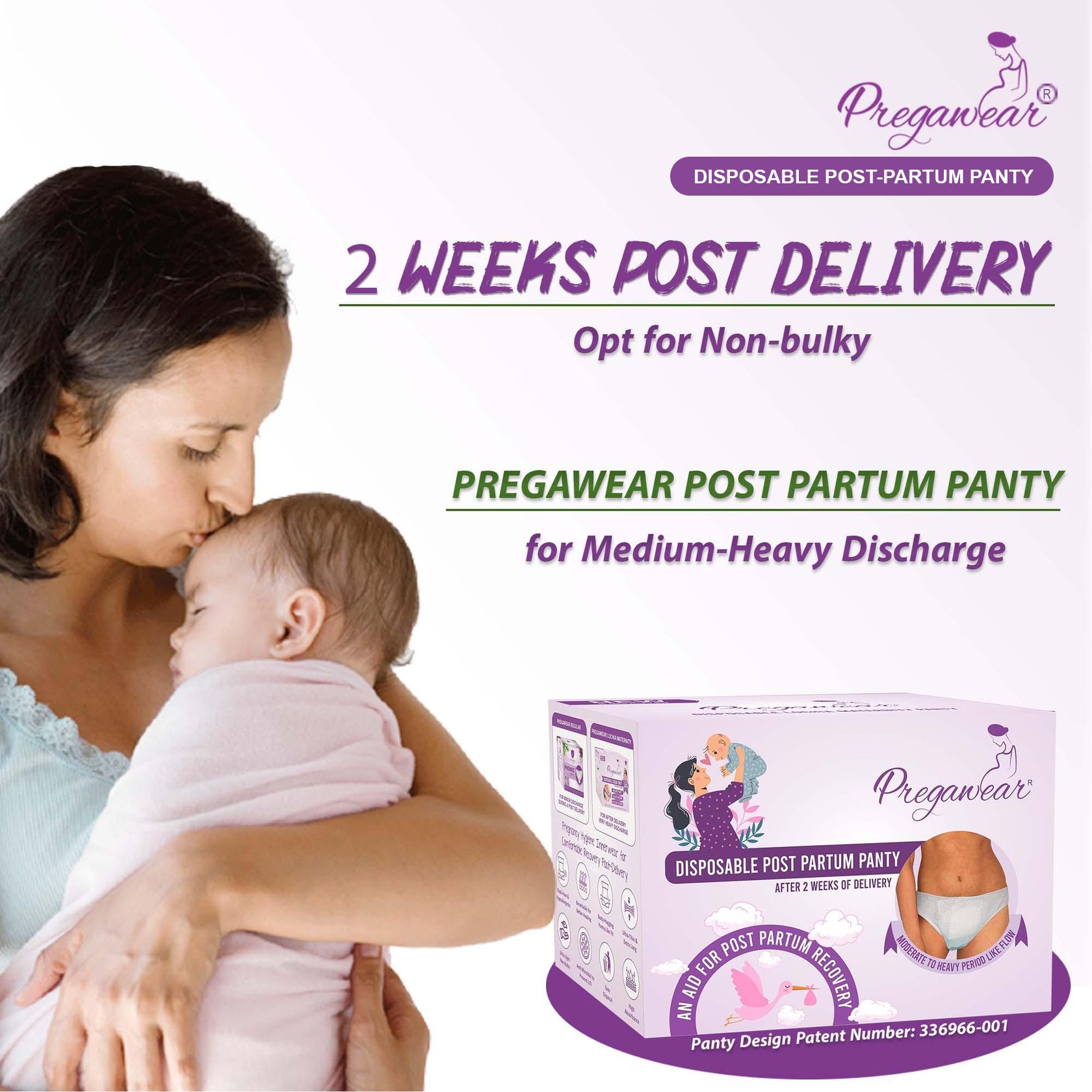 Post Partum Maternity Panties (Disposable) with High Absorption Pads for After Lochia Heavy Flow.Pregawear--Disposable Post Partum Panty