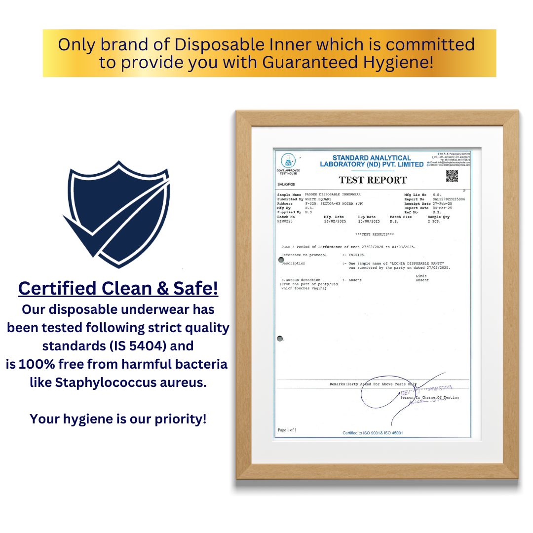 ANTI MICROBIAL TREATMENT :- Its Anti Fungal & Anti Bacteria Properties (Certified by an Accredited lab) make it ideal for long duration. Prevents the formation of Infections, UTI, Rashes, Itching or Swelling around the waist and thigh area