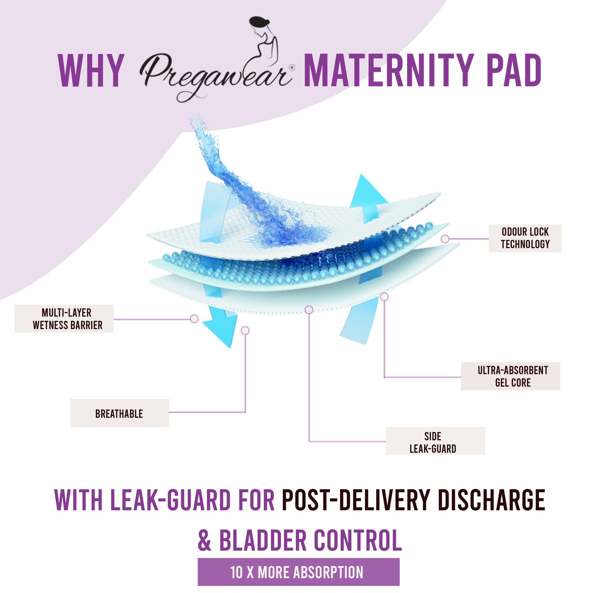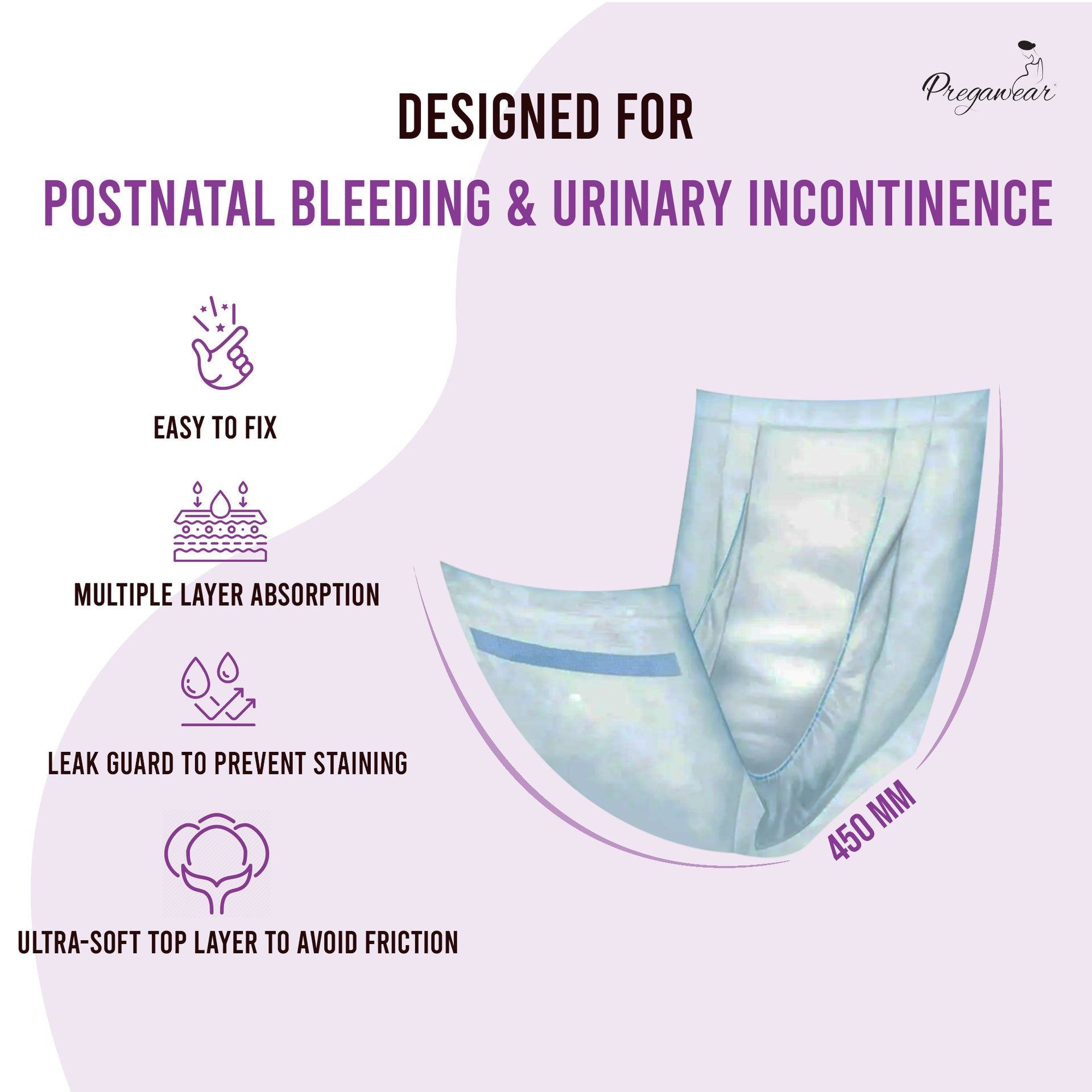 Pregawear Maternity Pad| Premium Disposable Soft Pads for Women| After Delivery Incontinence High Absorption | Heavy Periods | Leak Guard| Postpartum Flow| Rash Free | Overnight Protection