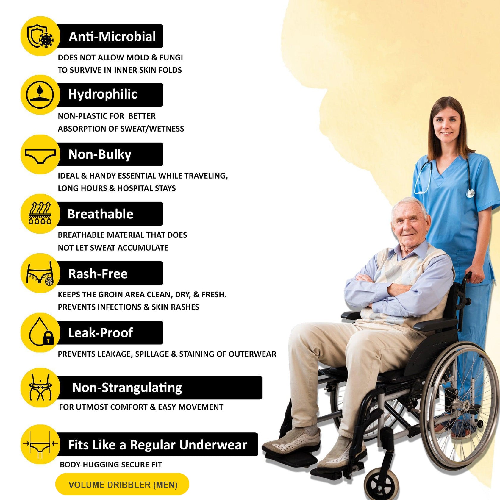 - Prowee-D ( Volume Dribbler Men) Disposable Customised Men briefs for Urinary Incontinence/Leak (Large Volume)