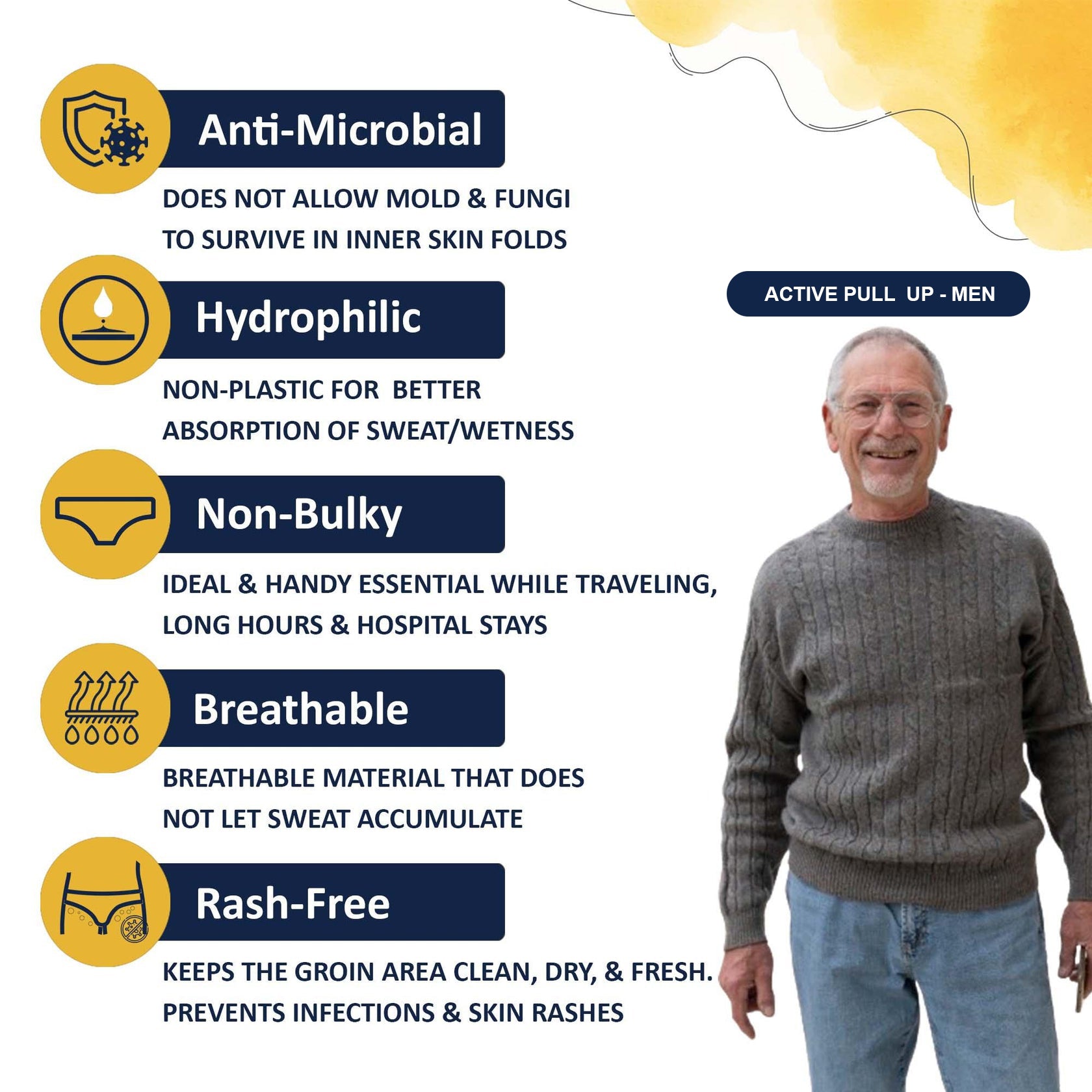 Specially designed for Active Living. Can be worn regularly, during long walks, office, traveling, train journeys, flights, or hospital stays. It is NON BULKY UNLIKE A DIAPER