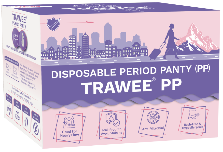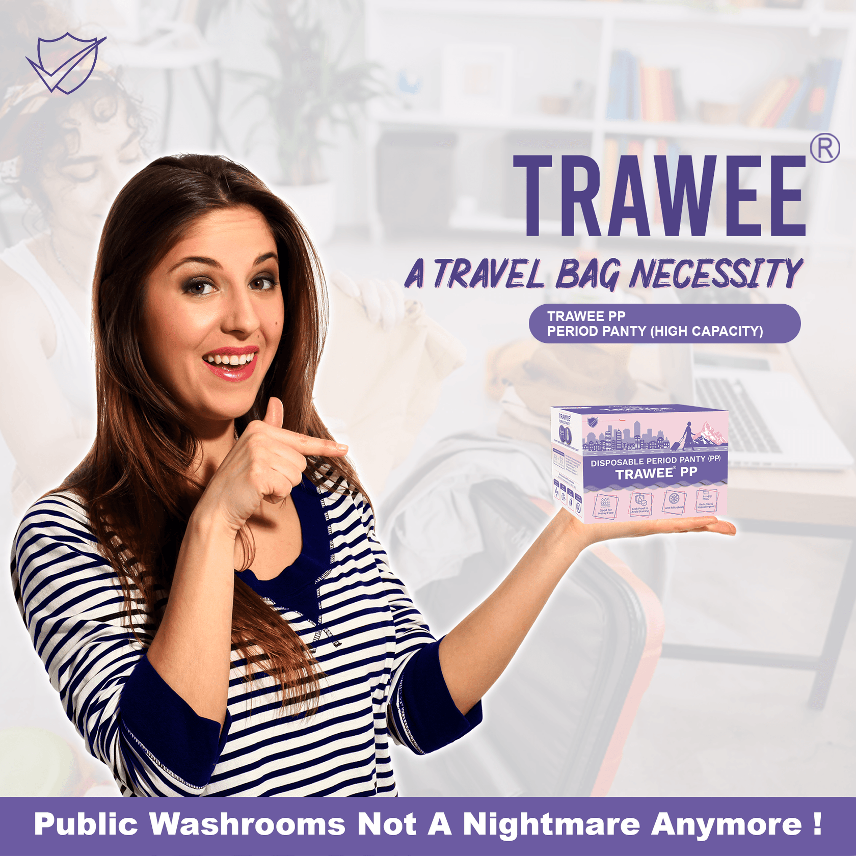 Trawee®️ has come up with the Most Innovative and Simplified version for solving the age-old Period Hassles. The First Ever Disposable Period Panty that comes in 6+ Sizes to accommodate each and every body type! The Uniqueness of Trawee®️ Period Panty is not only the Size Variations but also the Patented Design (Women Design No. - 336966-001). The Ultimate Period Solution is ideal for First Periods, Teenagers in School, Young Adult in College, Long Office Hours, While Traveling, Heavy Flow caused by PCOS/PCOD or other factors, Peri-Menopausal Heavy Periods, Untimely Dysfunctional Uterine Bleeders or Irregular Periods.